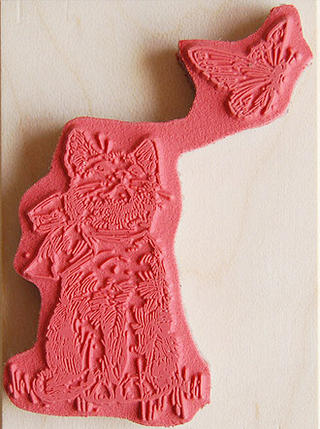 ラバースタンプ 子猫と蝶 木の持ち手 ウッドマウント 輸入スタンプ アートスタンプ ゴム印・スタンプ