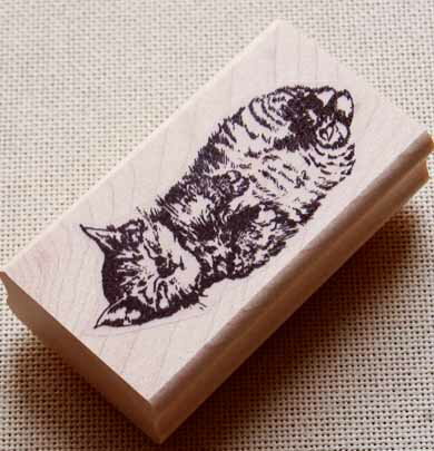 ラバースタンプ 眠っている子猫 木の持ち手 ウッドマウント 輸入スタンプ アートスタンプ ゴム印・スタンプ