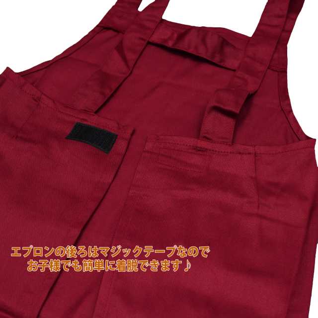エプロンの後ろ部分はマジックテープ留めなので小さなお子様でも簡単に着られます。