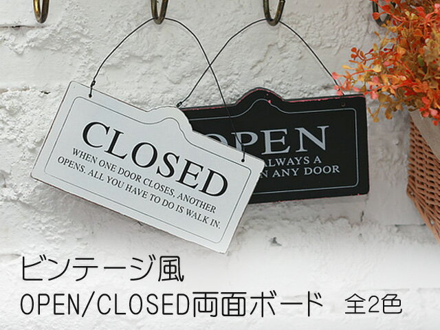 送料無料 ビンテージ 風 OPEN CLOSED 両面 ボード 全2色 / ブラック ホワイト カフェ おしゃれ ディスプレイ インテリア デコ 演出 看板 レストラン アンティーク オープン クローズド 外国 装飾 プレート サインボード 案内 ウッド 木製