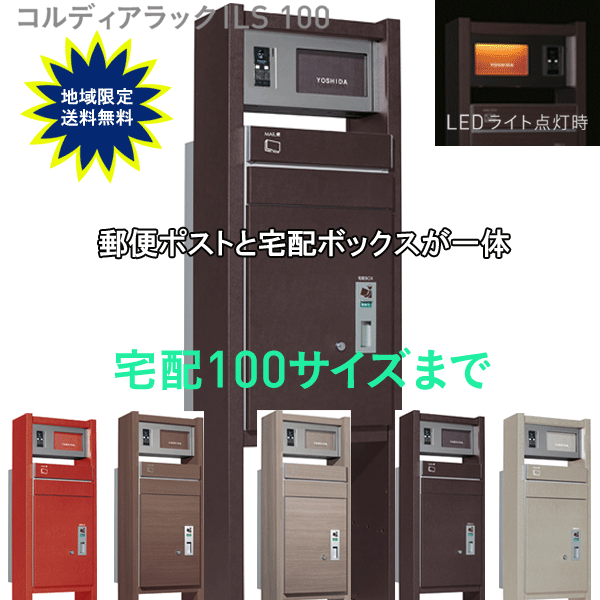 宅配ボックス 戸建て 機能門柱 通販 再配達不要 宅配ポスト ユニット コルディアラックILS 100 LEDライト・ネームプレート・インターホンカバー・ポスト付 シリンダー錠 郵便受け 門柱建て 地域限定品